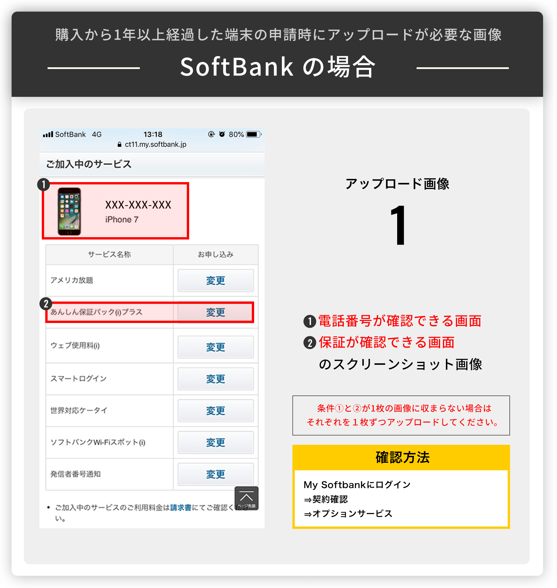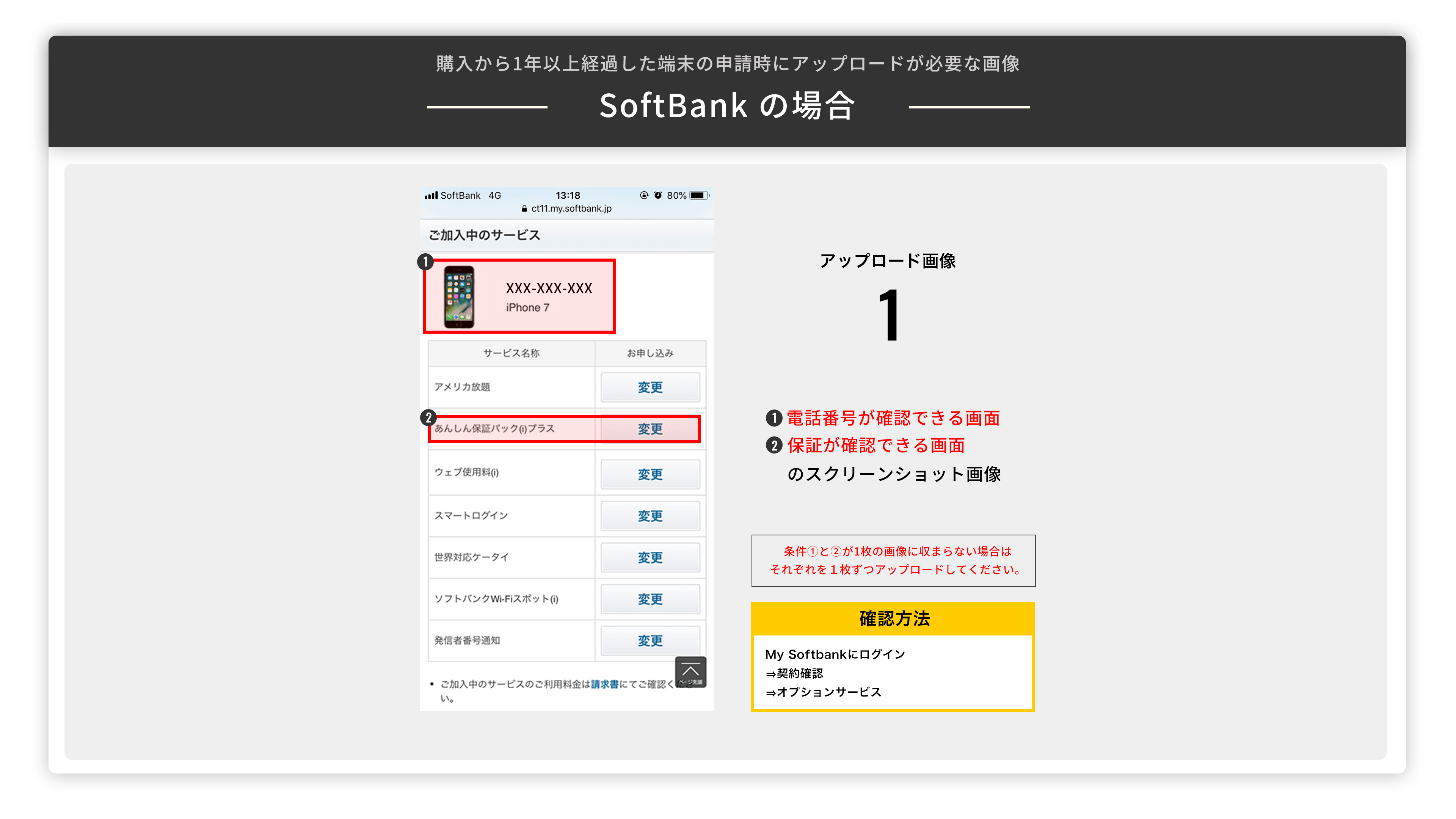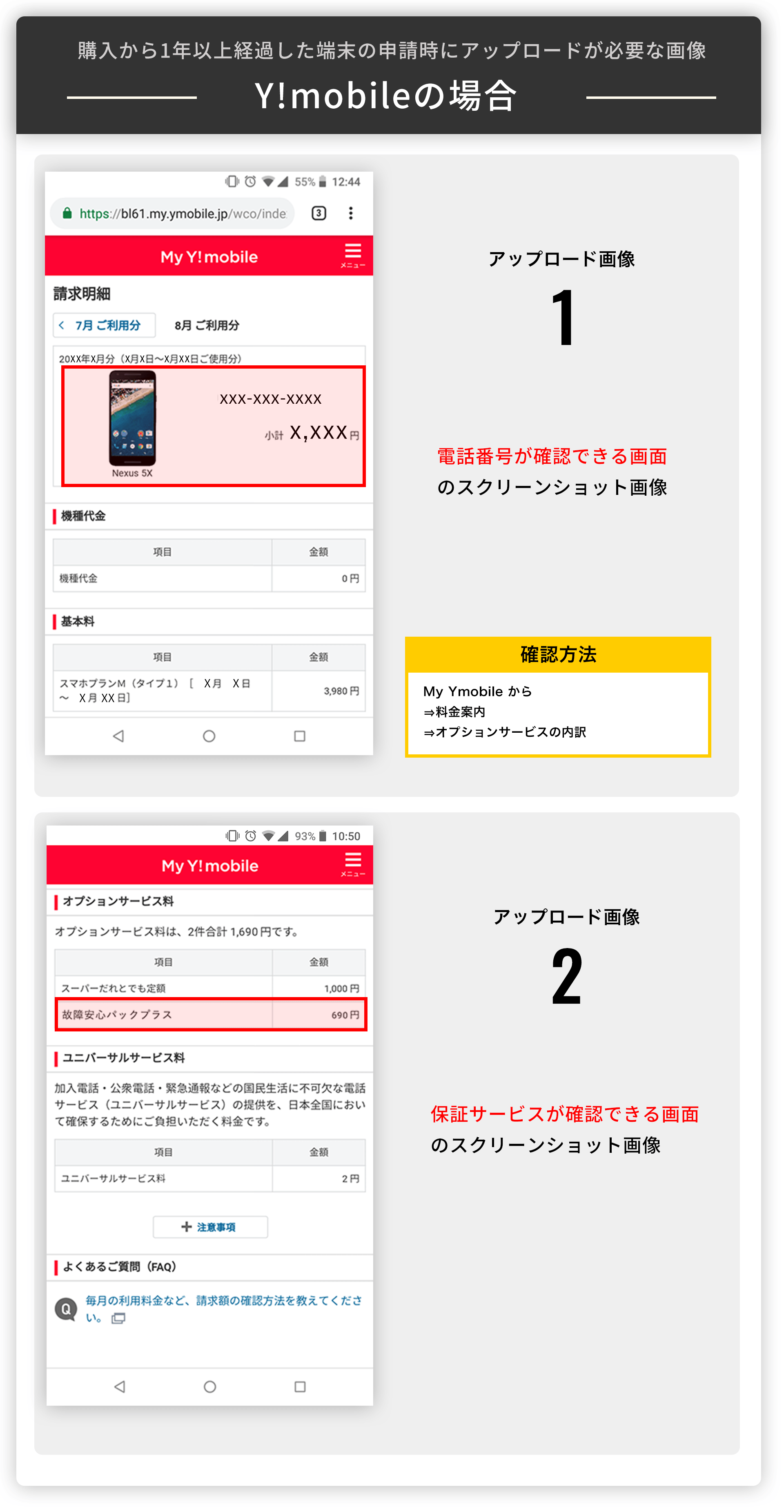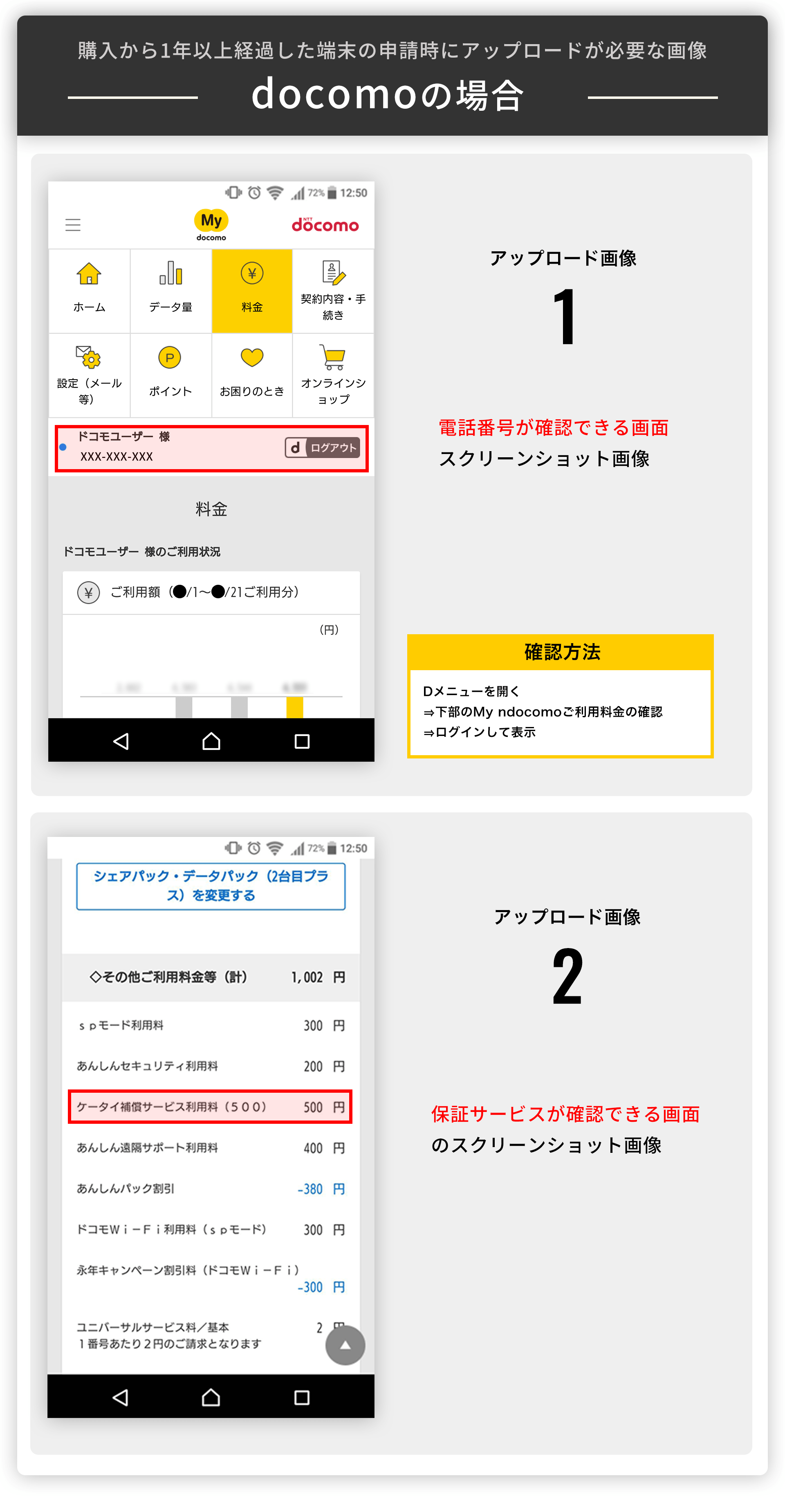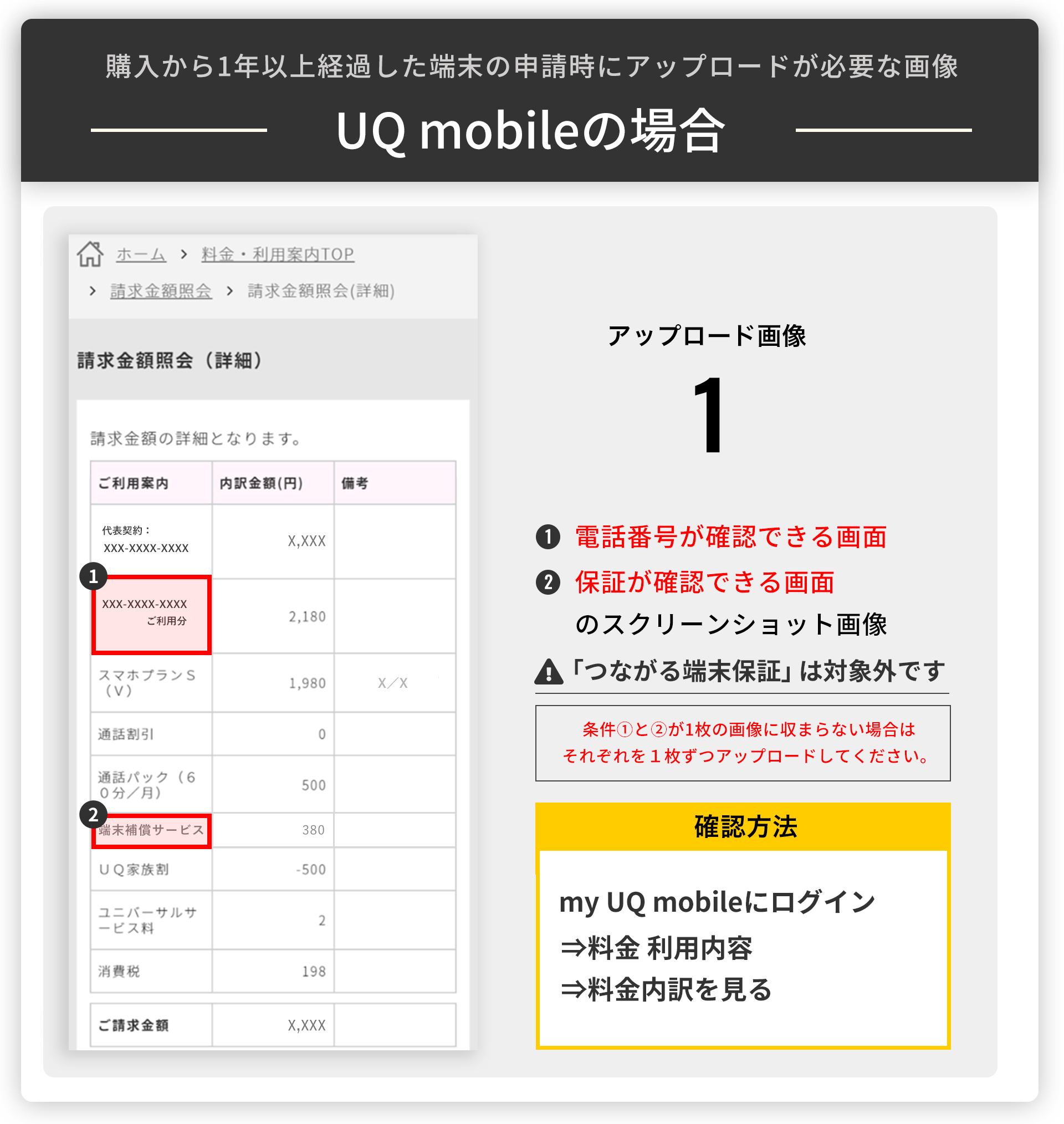 新規取得から1年を経過している端末は、メーカーまたは通信キャリアが提供する有償補償サービスに加入中で、かつ当該サービスにより補償が受けられる状態にあればお申込みが可能です。